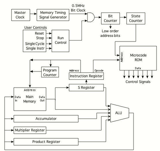 to the main memory, the accumulator, and the Multiplier and Product