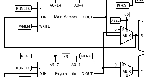to the ALU, and enables writing to memory. It also sets the ALU to