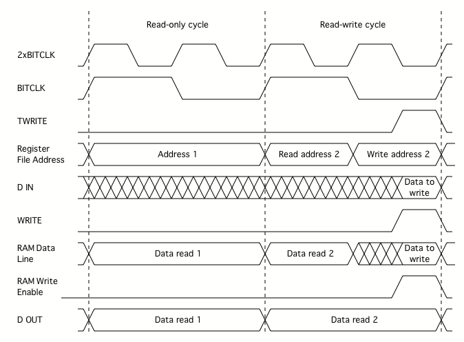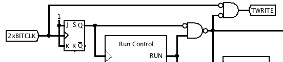 clocked at twice the BITCLK rate, and a timing signal TWRITE is derived