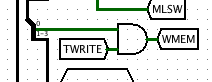 I found that spurious changes were occurring to the memory contents since I added the display. I fixed this by gating WMEM with TWRITE, so that memory writes only occur during the CPU Write phase. The previous gating of WMEM with RUNCLK was removed.