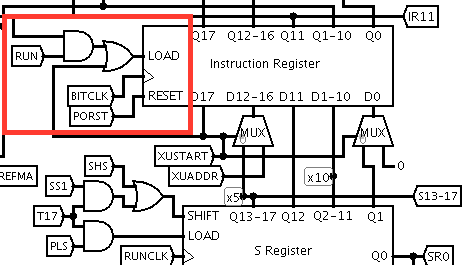 instruction register is clocked with RUNCLK, because the XUSTART pulse