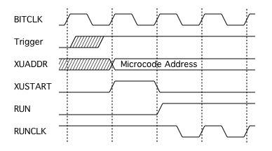one-BITCLK pulse at XUSTART and then setting the Run FF.