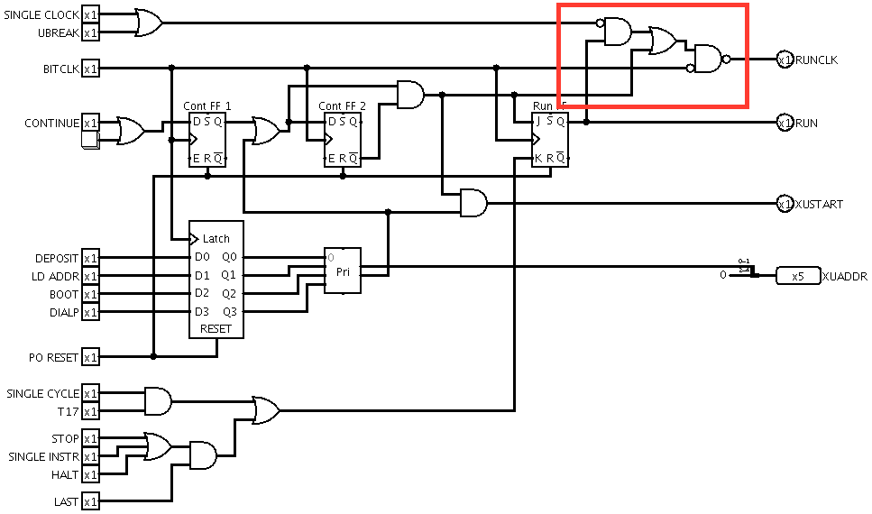 before, and the Run Control subcircuit lets through a RUNCLK pulse