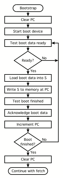 is pressed. It first clears the PC, starts the boot device and then