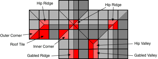 Roof Tile or Inner Corner (hard to describe, see examples below). The "gabled" versions of these blocks always have vertical faces on two ends and auto-connect on the other two sides, whereas the "hip" versions auto-connect on all four sides. |