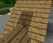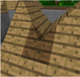 | Connection between a ridge or valley and a sloping face. The dark wood block in each of these is a plain Roof Tile. |